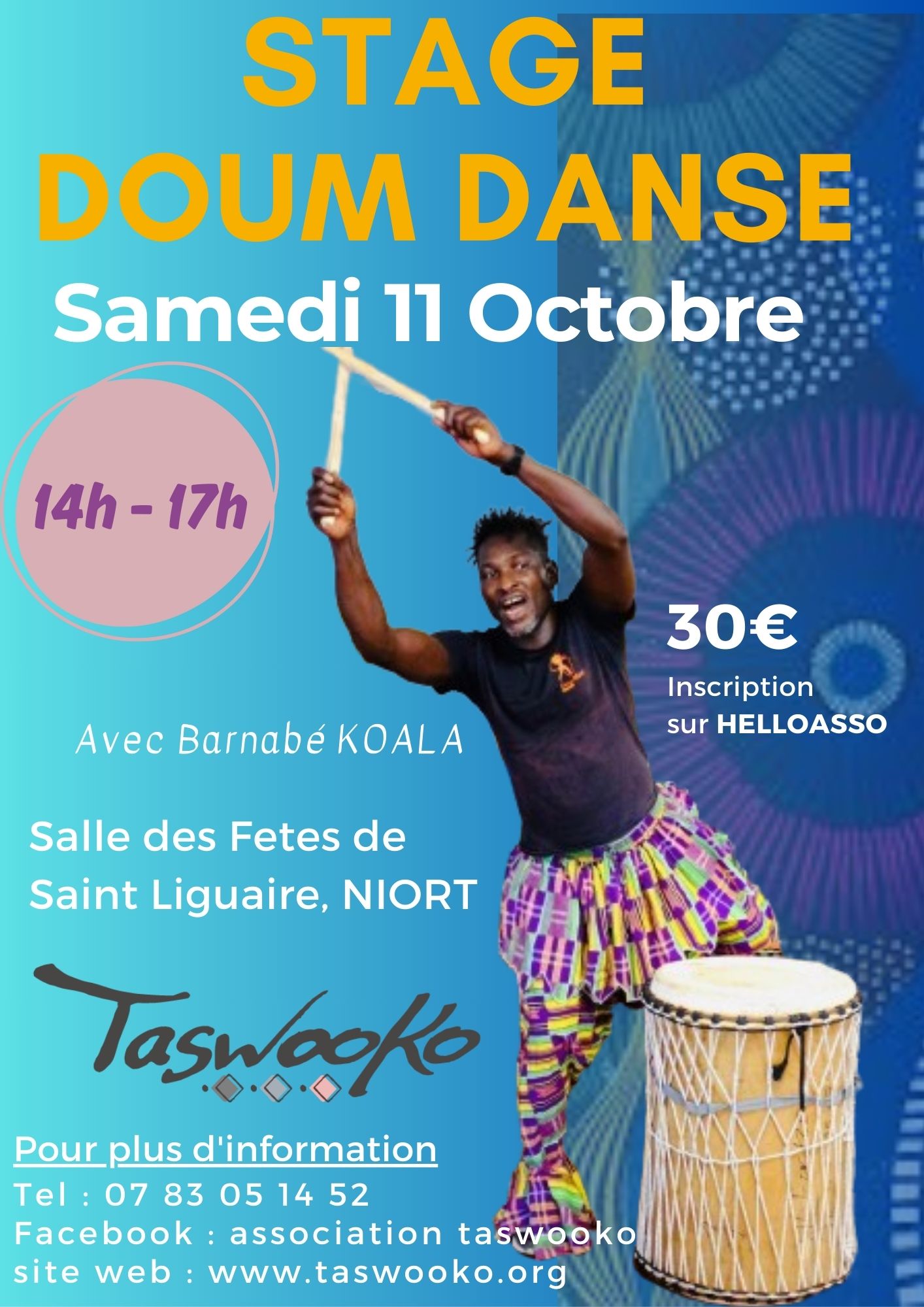 Inscriptions sur HelloAsso : https://www.helloasso.com/associations/association-taswooko/evenements/stage-doum-danse-11-oct-2025